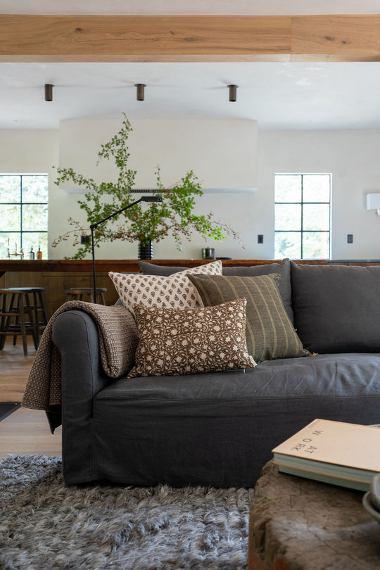 Jordan | Charcoal Tan Floral Handblock Pillow Cover